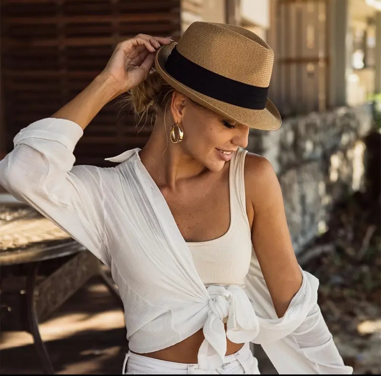 LN62167 フェドーラ紙ストロー帽子 ショートブリム ビーチハット