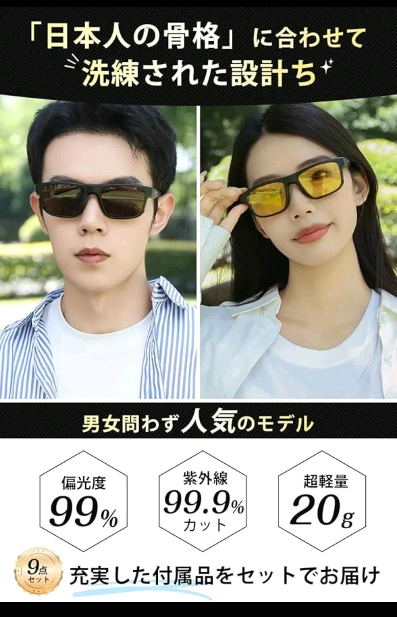軽量でありながら耐久性に富んだ素材が使用されており、長時間の着用でも疲れにくい設計です。スタイリッシュなフレームは、普段使いだけでなく、特別なイベントやレジャーシーンでも活躍間違いなし!旅行やドライブのお供としてもおすすめです。
