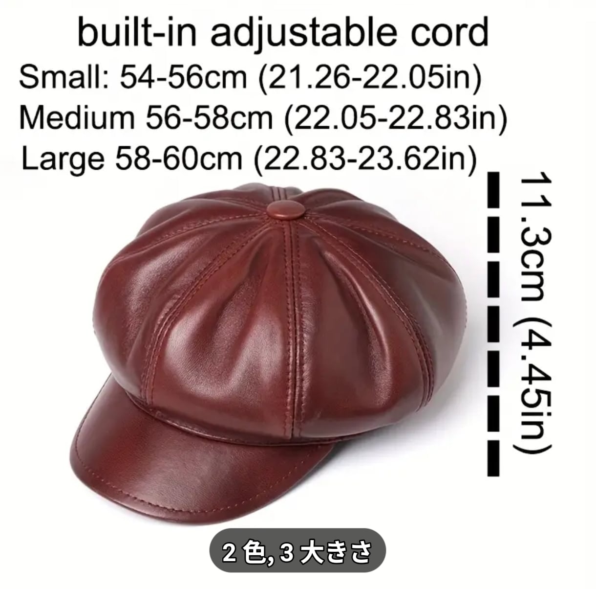 エレガントなスタイルを引き立てるLR1830510 本革シープスキンレザー ニューボーイキャップが新登場!メンズ向けの本革シープスキンレザーで、クラシックビンテージスタイルをまとった一品です。通年通気性に優れた設計で、季節を問わず快適さを提供します。
