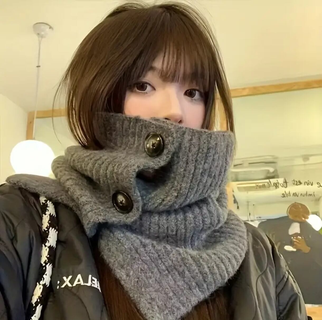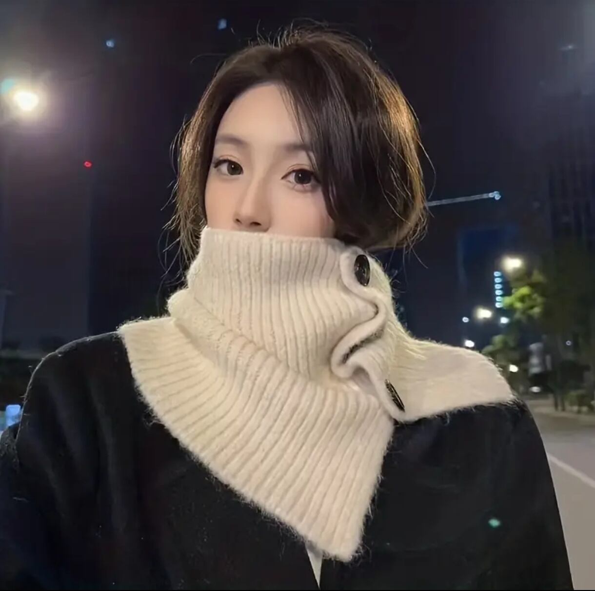 無地のニット生地で、さまざまな服装に合うため、特別な日のおしゃれや日常のコーディネートに大活躍します。和風の雰囲気も感じるこのネックウォーマを身に着ければ、シンプルながらもおしゃれなスタイルが完成します。