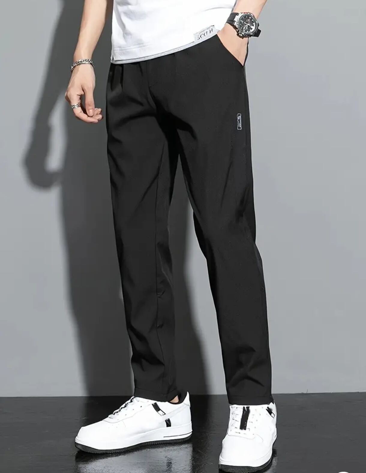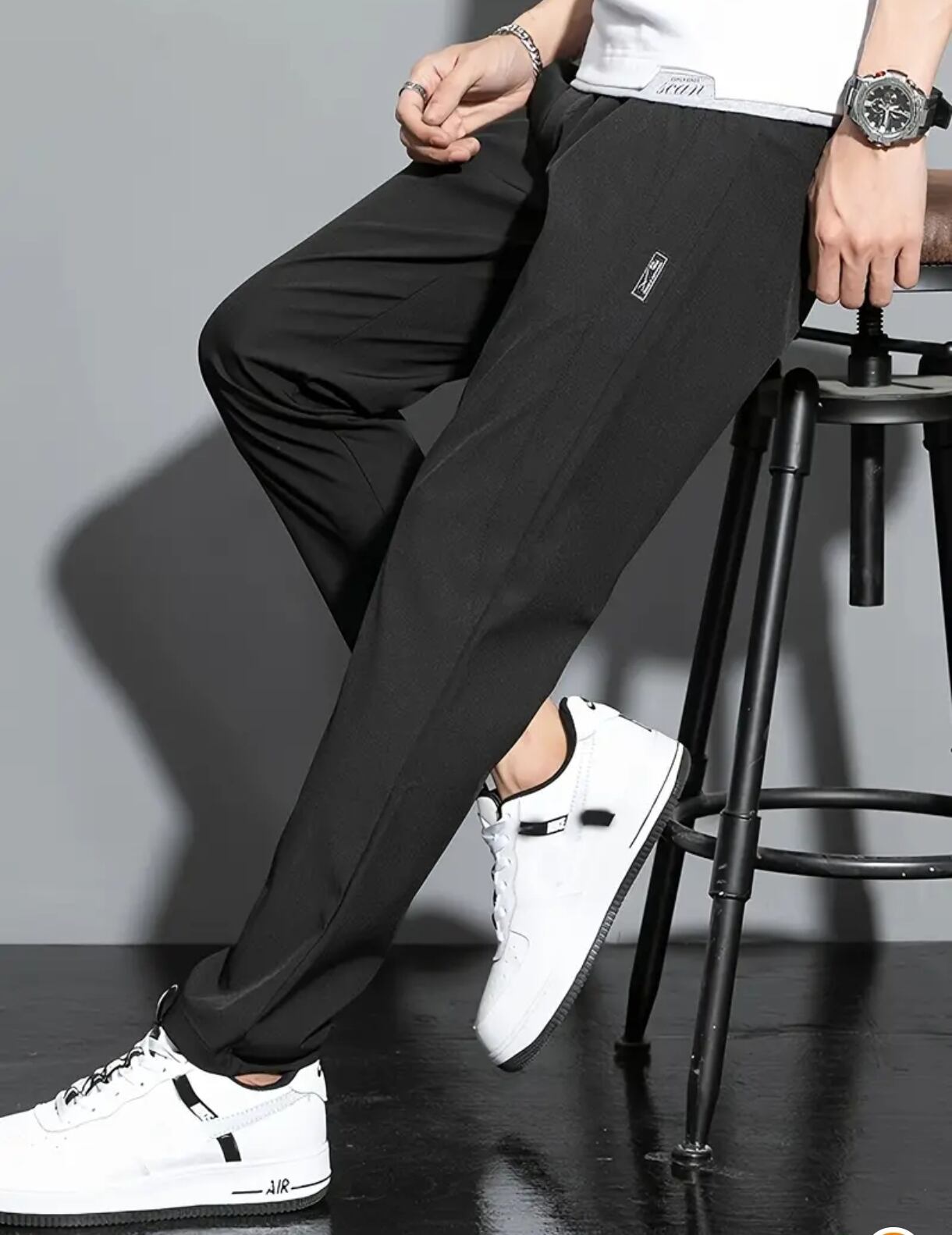 涼しい夏の日に最適な、240613 メンズサマーパンツ黒。サラサラとした肌触りで、快適な着心地を提供します。ウエストにはゴムが入っているので、ストレッチ性があり、動きやすさも抜群です。ウォーキングやランニング、スポーツ観戦など、様々なシーンで活躍すること間違いなし。