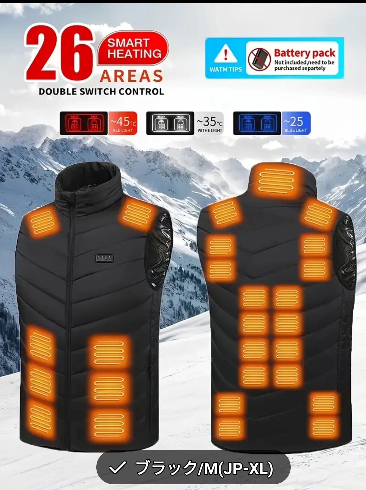 EL377561 男性用26枚ヒーターパッド付き電熱ベスト 3秒急速加熱 ポリエステル100%