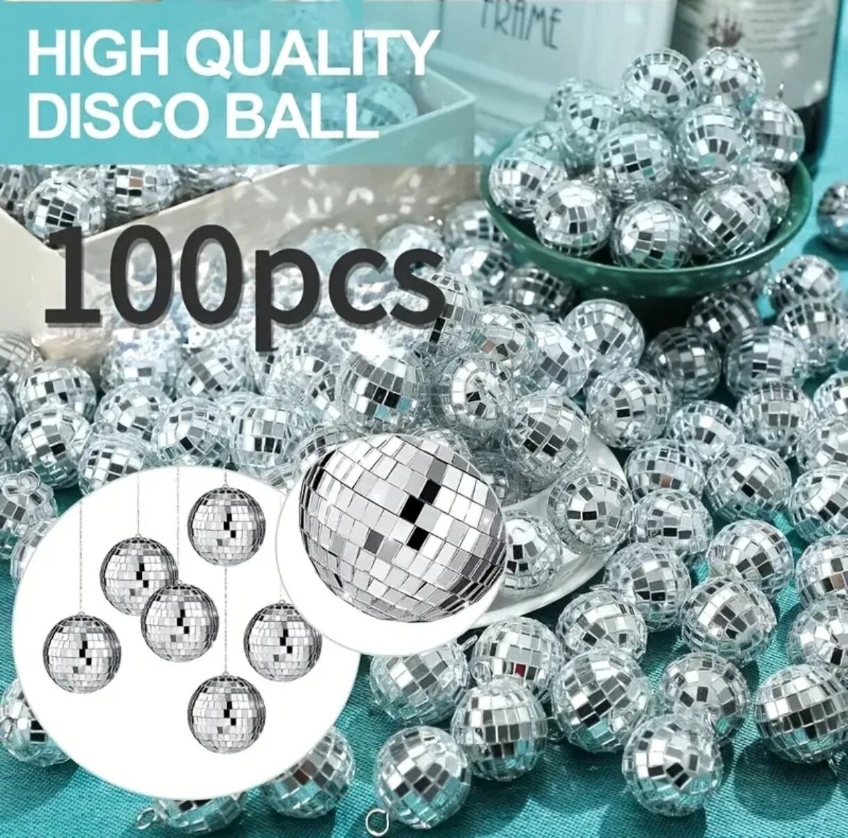 華やかな装飾を楽しむJW490834 ミニミラーボール 100個セット 直径3cm - パーティーやイベントを盛り上げる欠かせないアイテムです!このミニミラーボールは直径3cmのコンパクトなサイズで、100個セットだからこそ、さまざまなシーンで自在に使えます。プラスチック製で軽量ですが、その反射する輝きはお部屋を一瞬で華やかに変えます。